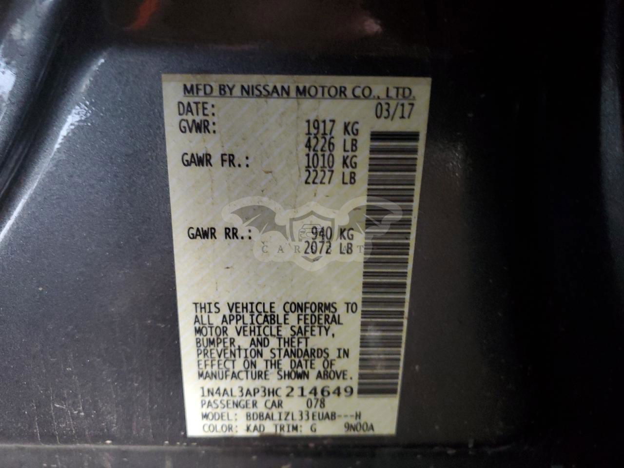 • VIN: 1N4AL3AP3HC214649