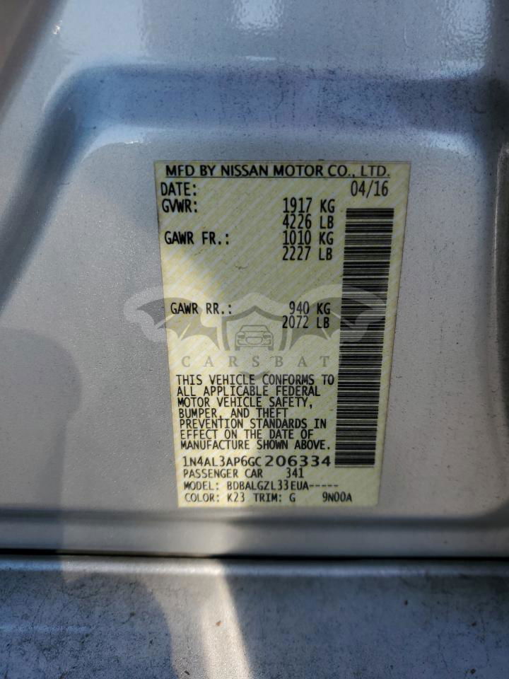 • VIN: 1N4AL3AP6GC206334