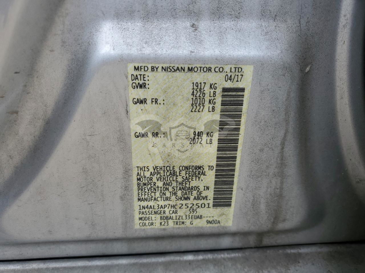 • VIN: 1N4AL3AP7HC252501