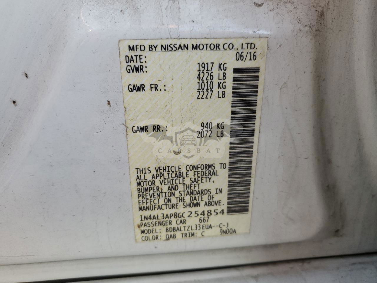 • VIN: 1N4AL3AP8GC254854