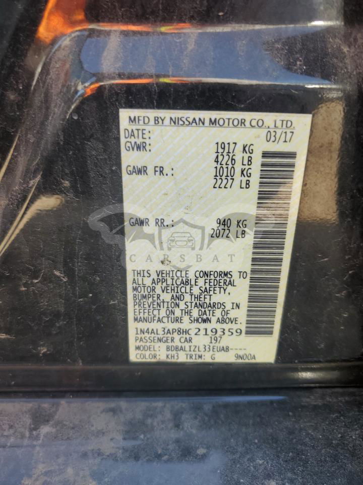 • VIN: 1N4AL3AP8HC219359