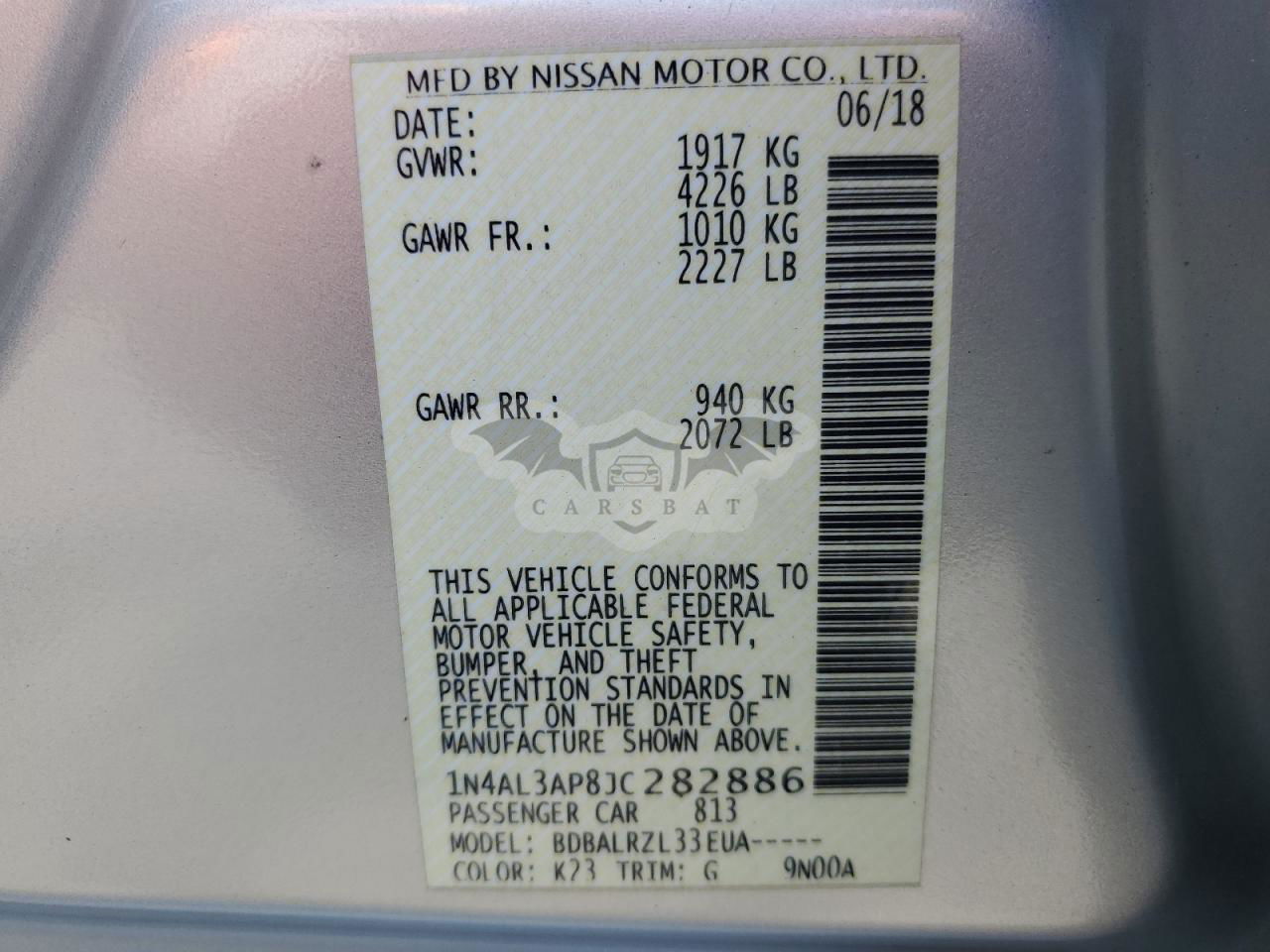• VIN: 1N4AL3AP8JC282886
