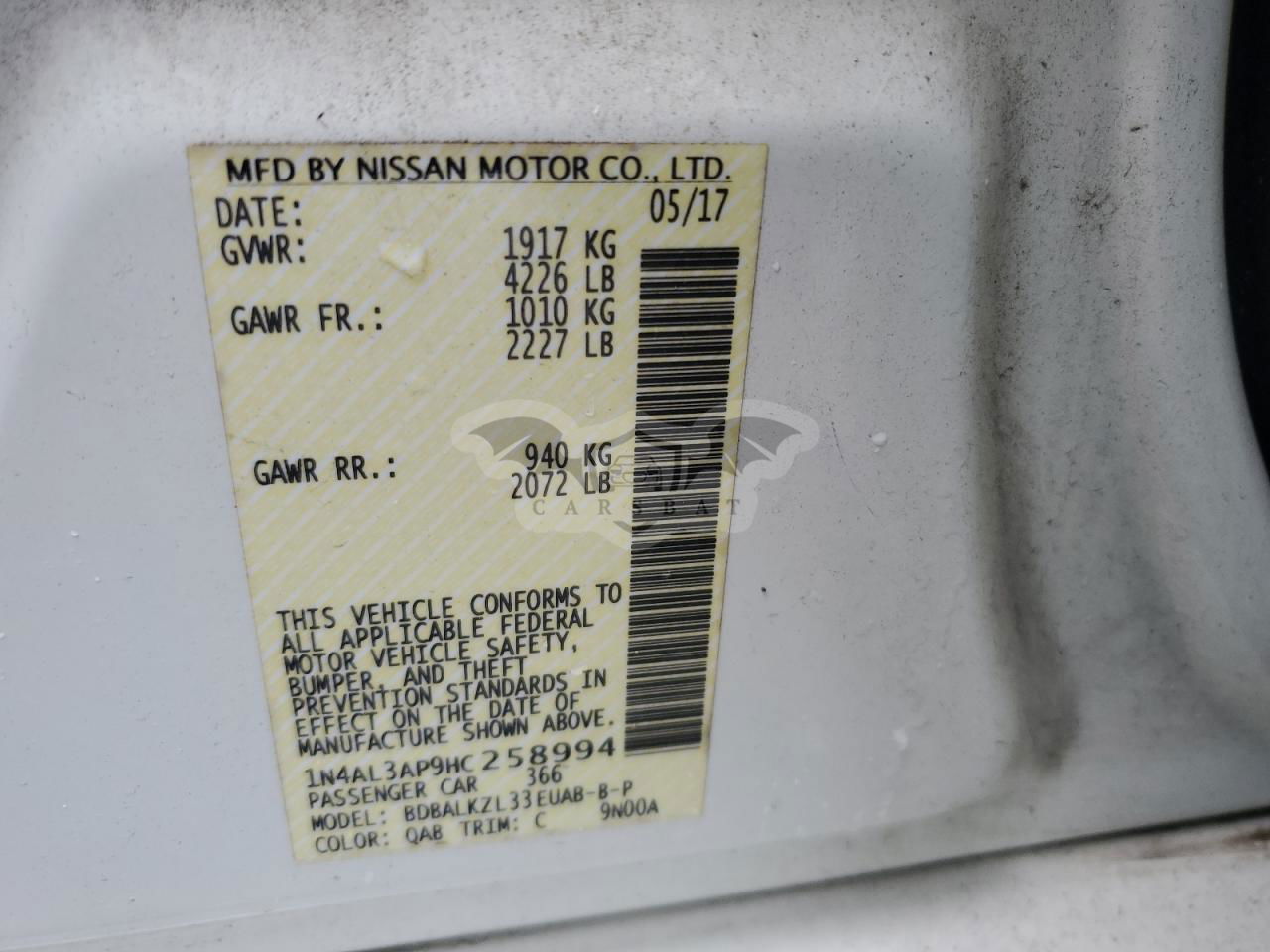 • VIN: 1N4AL3AP9HC258994