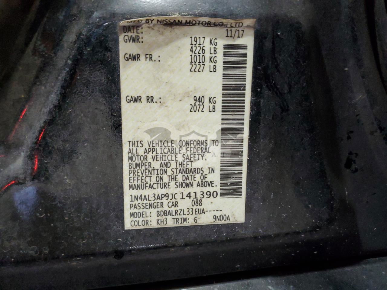 • VIN: 1N4AL3AP9JC141390