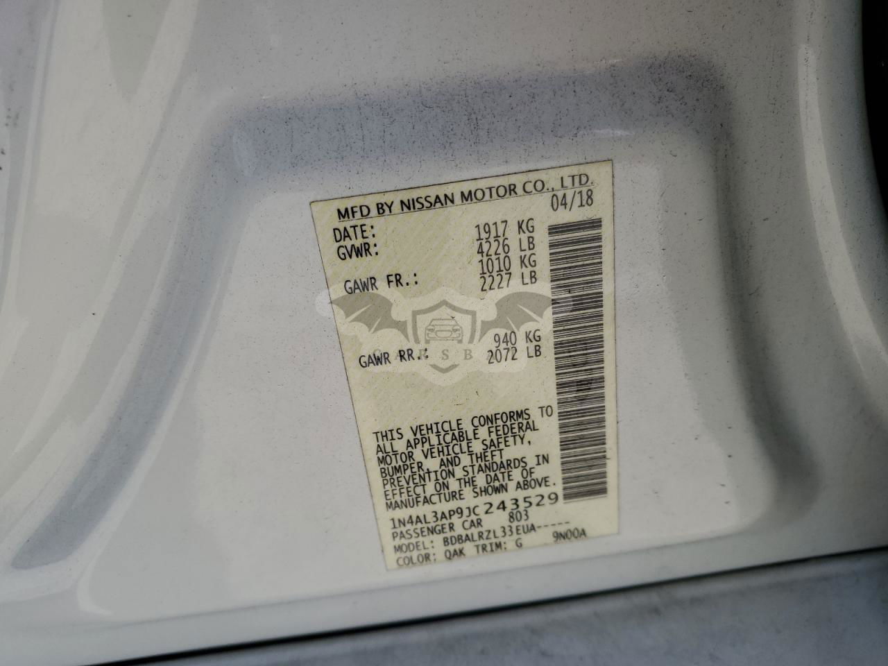• VIN: 1N4AL3AP9JC243529