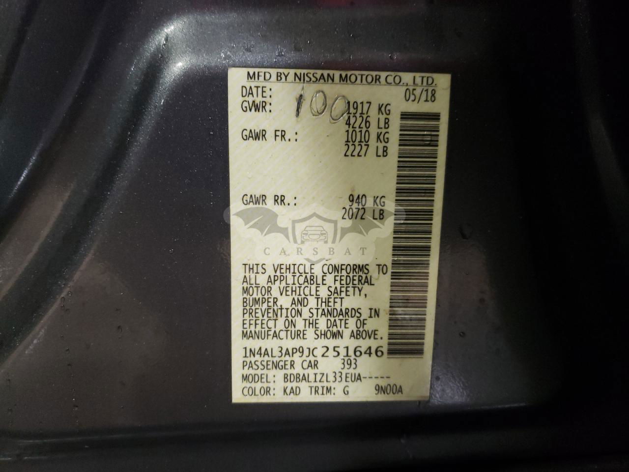 • VIN: 1N4AL3AP9JC251646