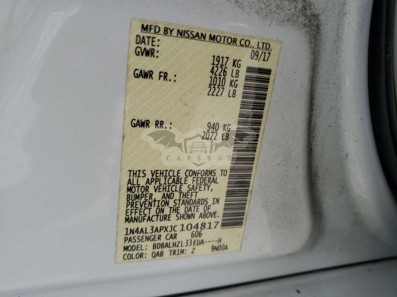 • VIN: 1N4AL3APXJC104817