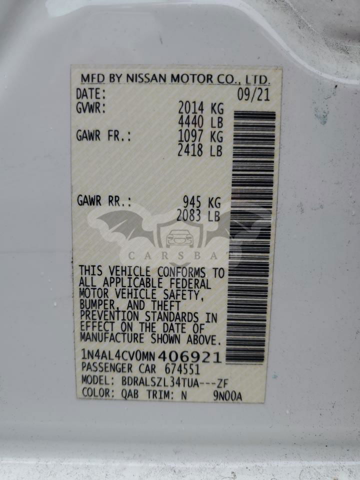 • VIN: 1N4AL4CV0MN406921