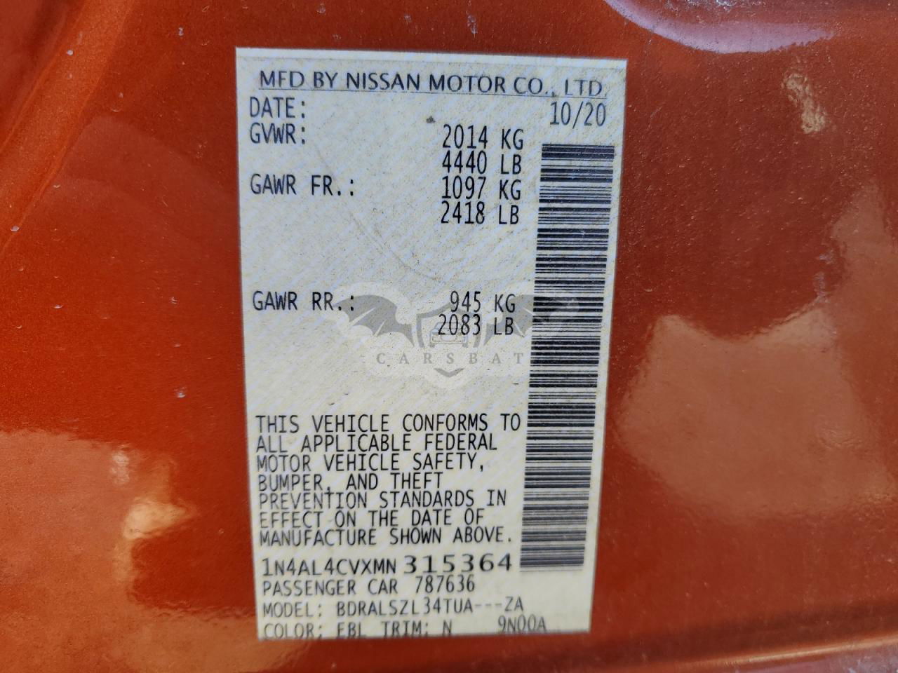 • VIN: 1N4AL4CVXMN315364
