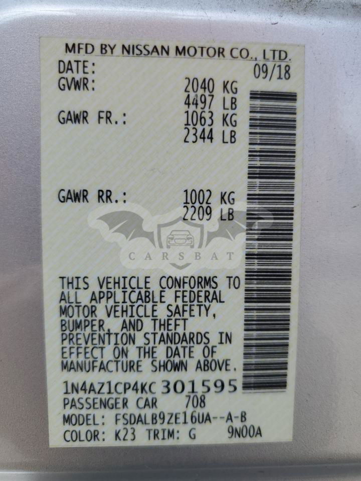 • VIN: 1N4AZ1CP4KC301595