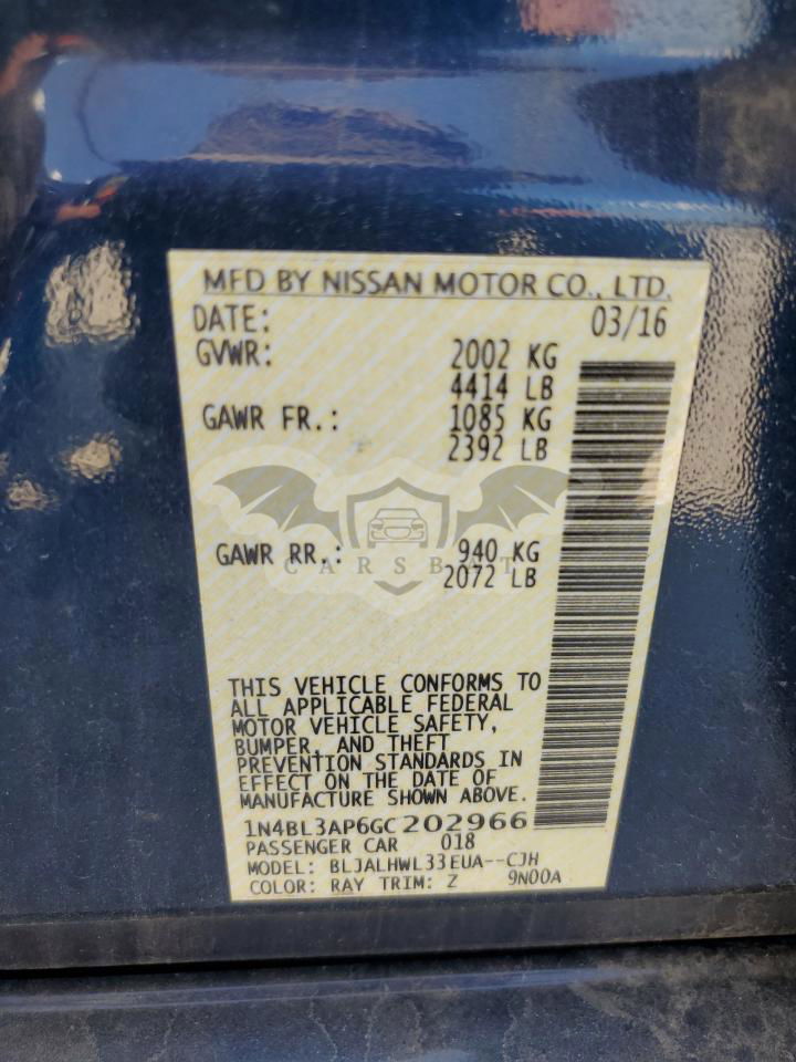 • VIN: 1N4BL3AP6GC202966