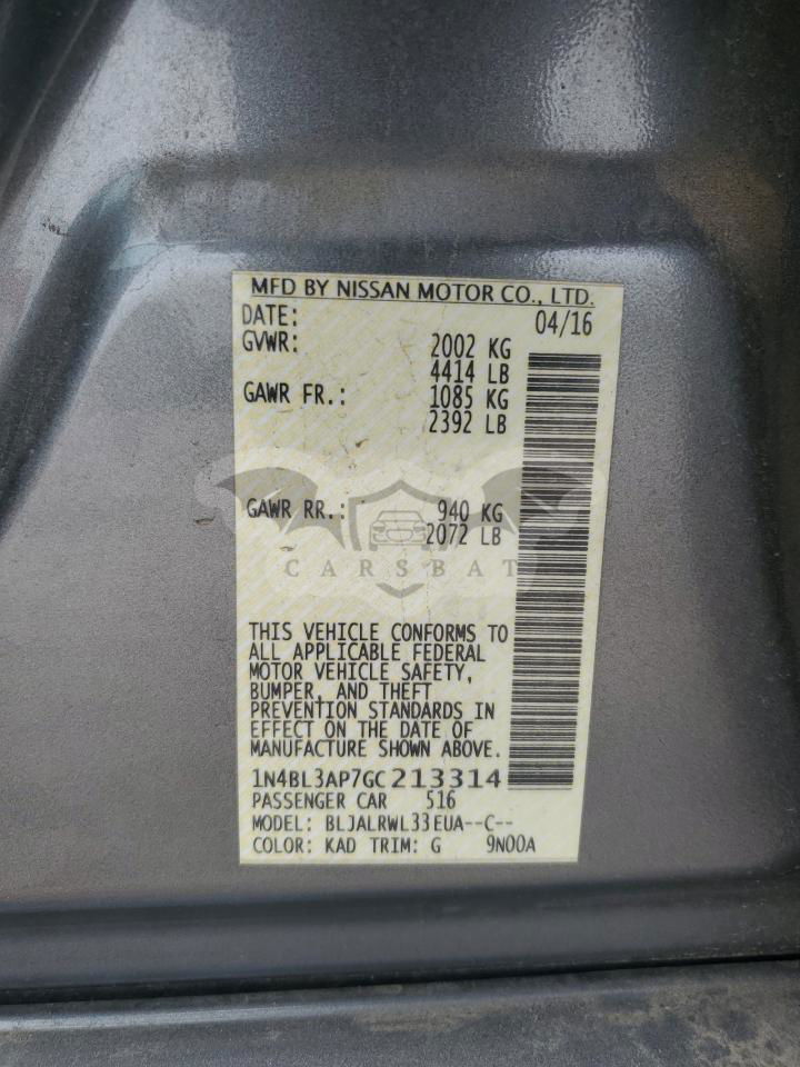 • VIN: 1N4BL3AP7GC213314