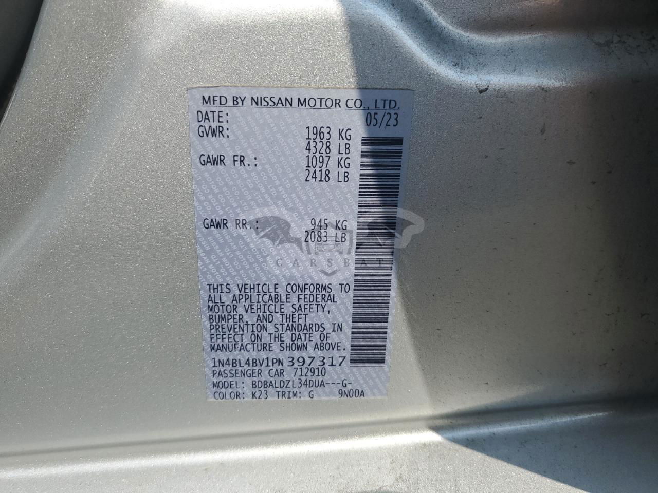 • VIN: 1N4BL4BV1PN397317