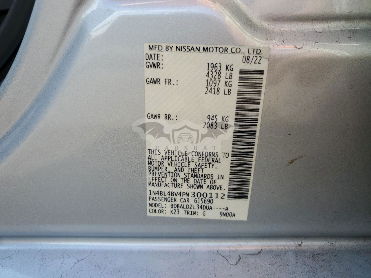 • VIN: 1N4BL4BV4PN300112