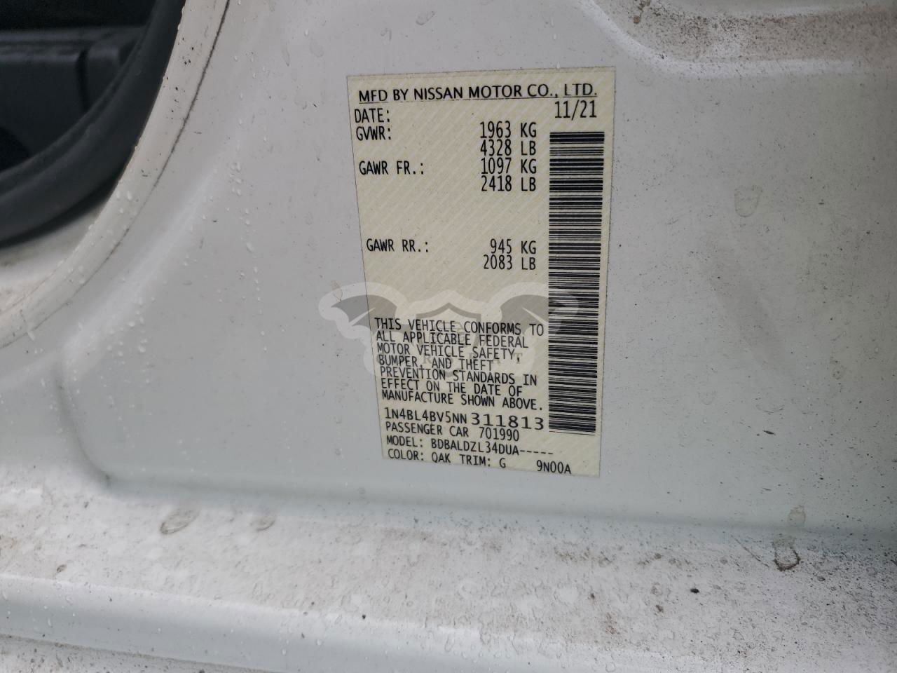 • VIN: 1N4BL4BV5NN311813