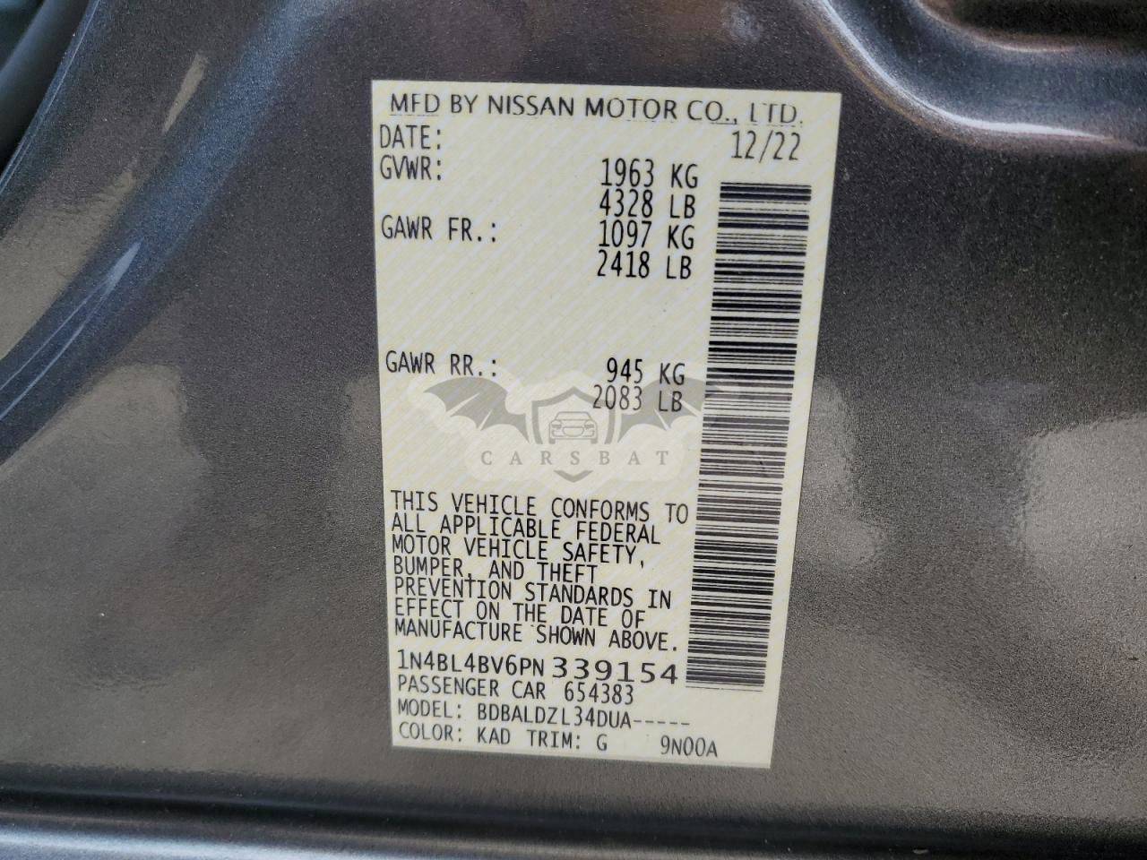 • VIN: 1N4BL4BV6PN339154