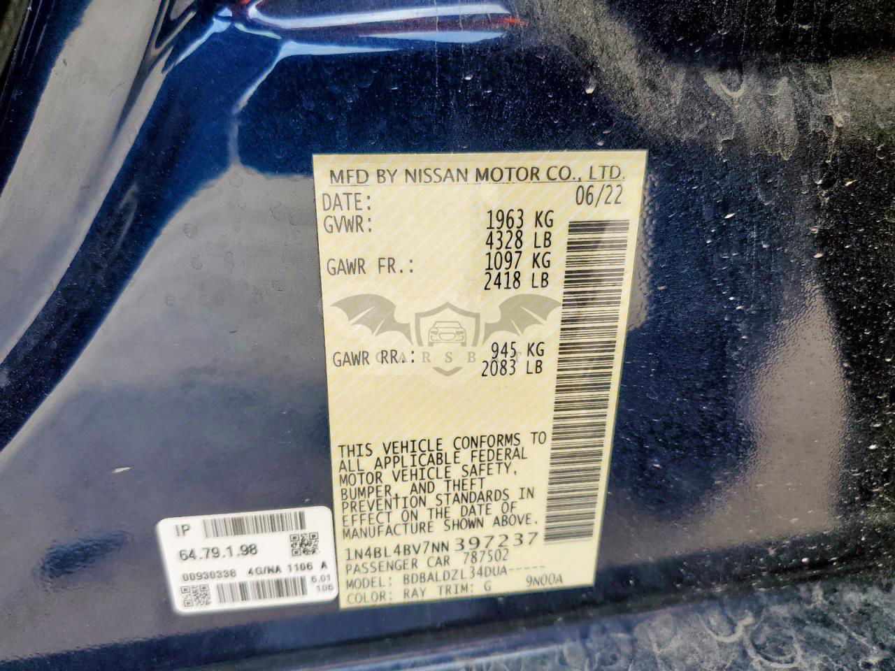 • VIN: 1N4BL4BV7NN397237