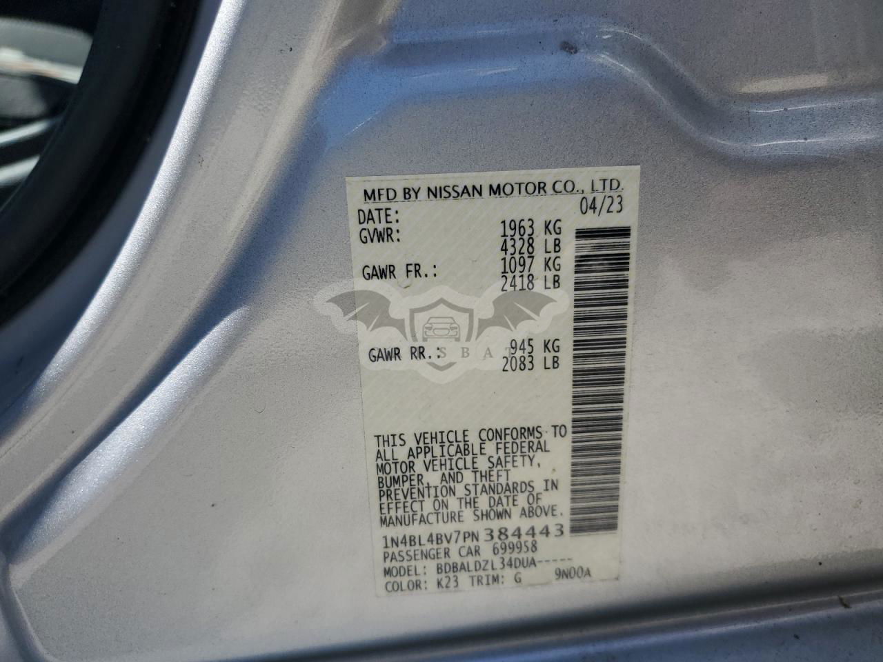 • VIN: 1N4BL4BV7PN384443