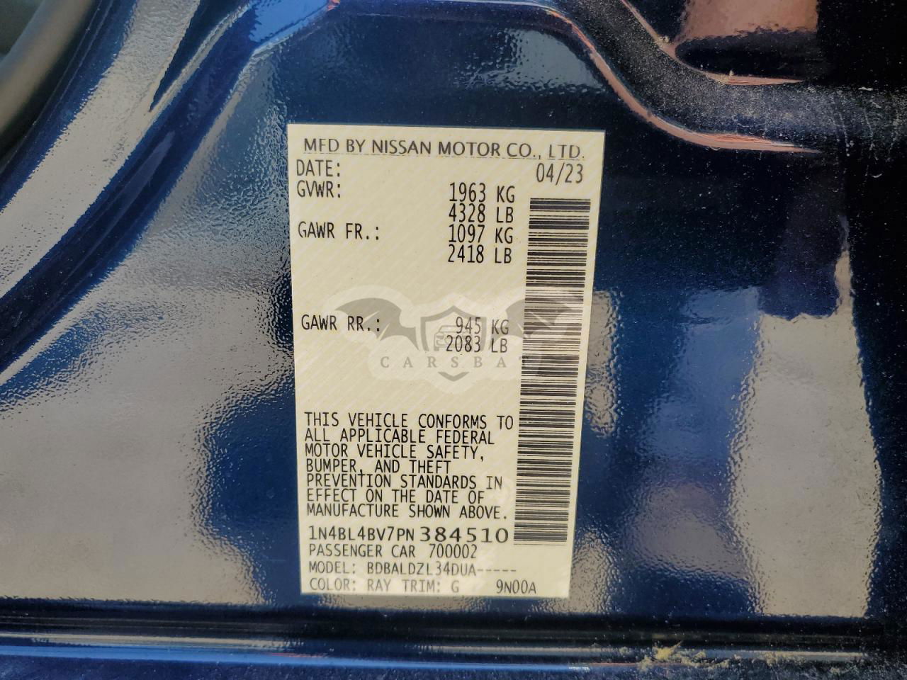 • VIN: 1N4BL4BV7PN384510