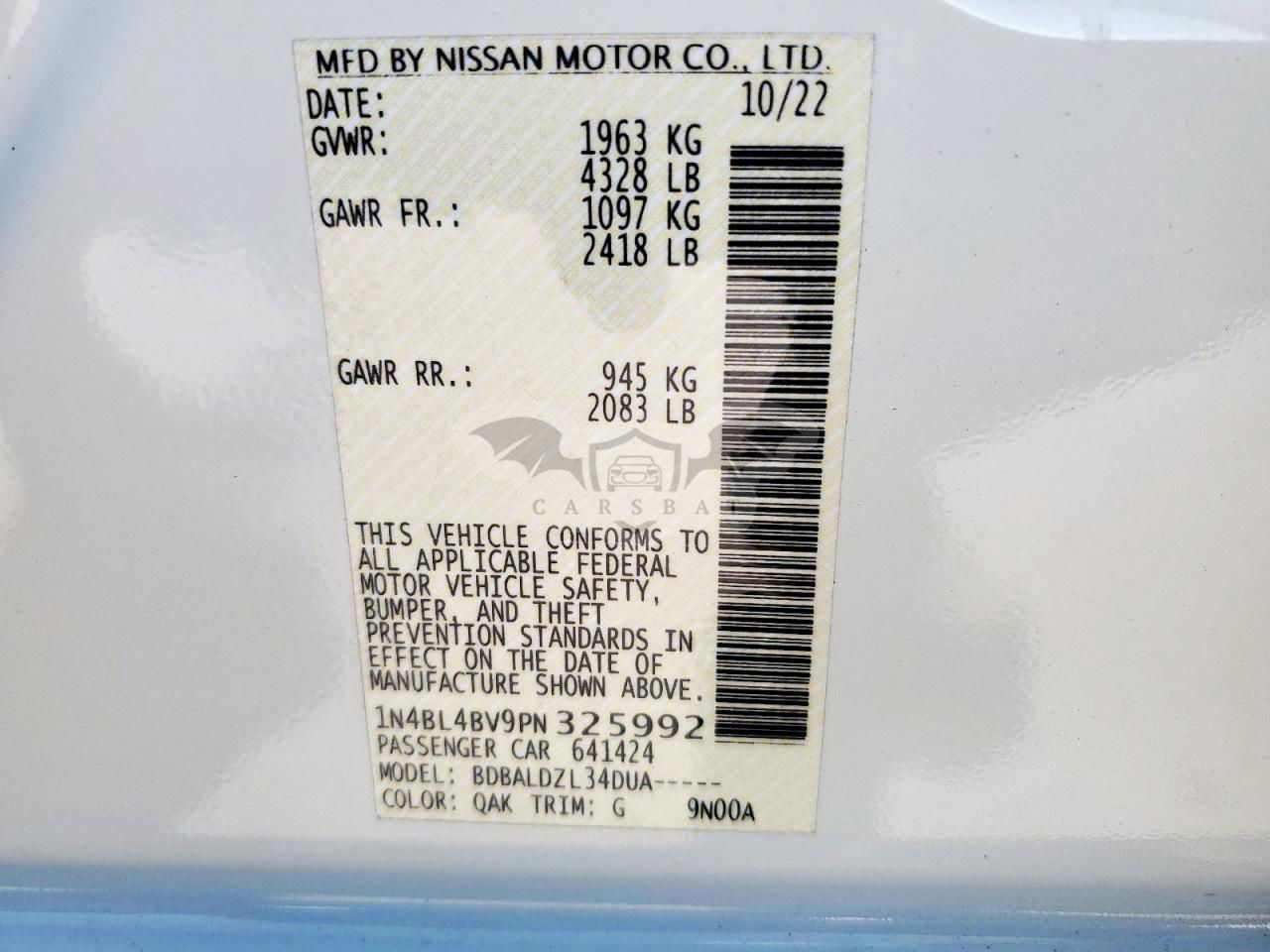 • VIN: 1N4BL4BV9PN325992