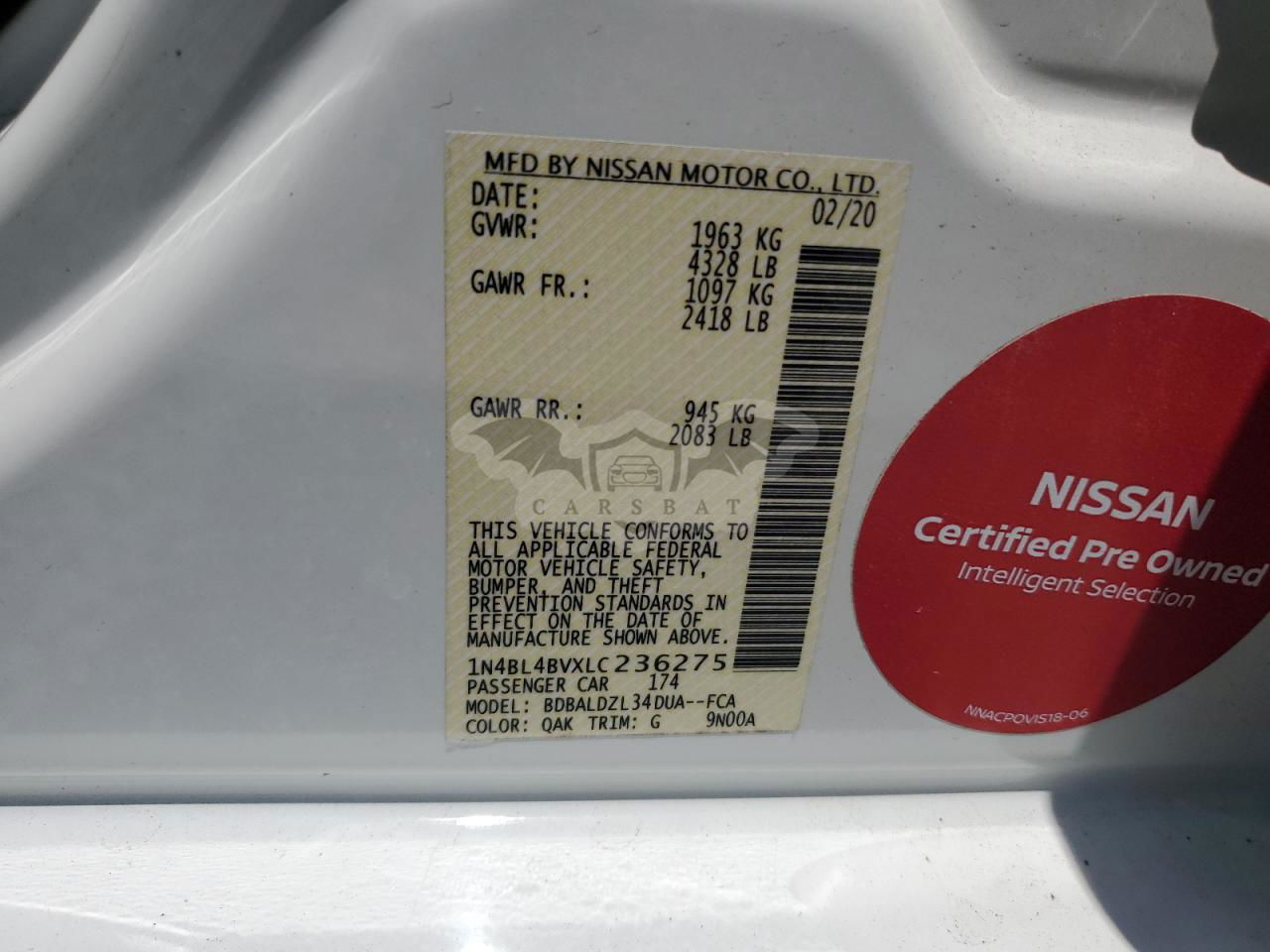 • VIN: 1N4BL4BVXLC236275