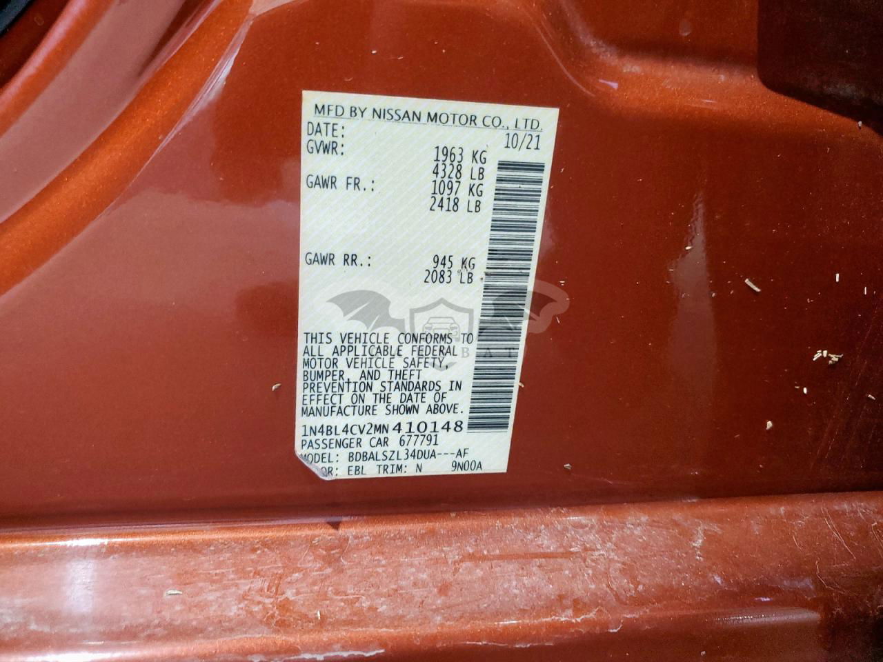 • VIN: 1N4BL4CV2MN410148