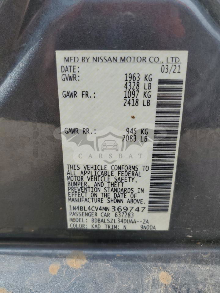 • VIN: 1N4BL4CV4MN369747