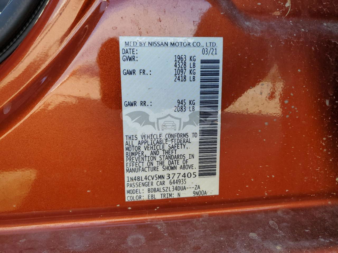 • VIN: 1N4BL4CV5MN377405