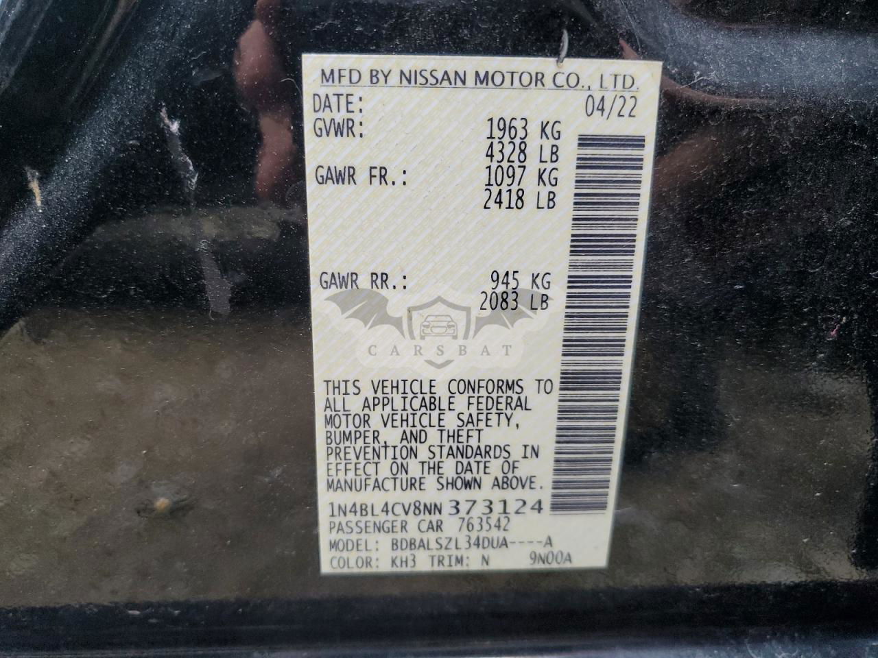 • VIN: 1N4BL4CV8NN373124