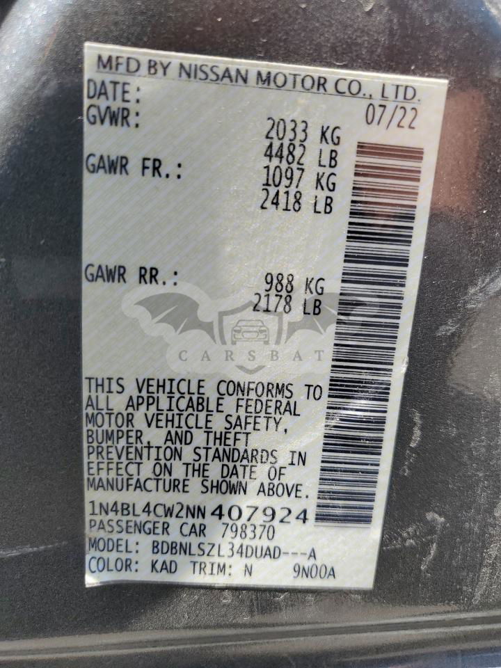 • VIN: 1N4BL4CW2NN407924