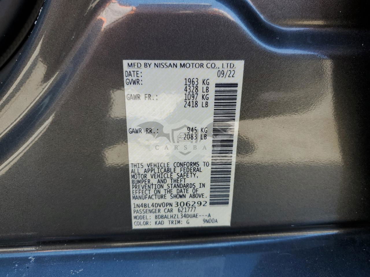 • VIN: 1N4BL4DV0PN306292