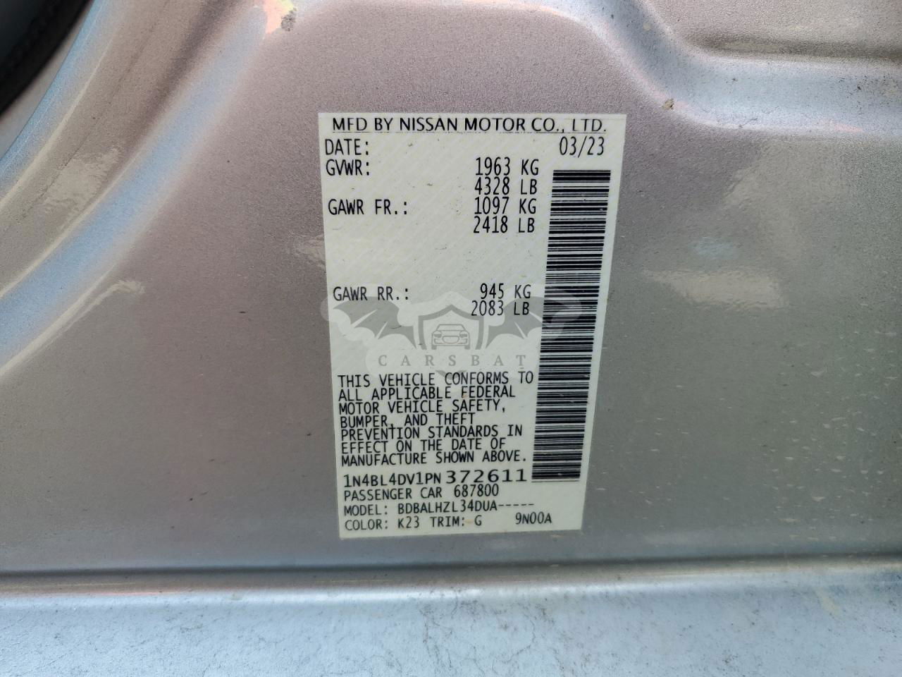 • VIN: 1N4BL4DV1PN372611