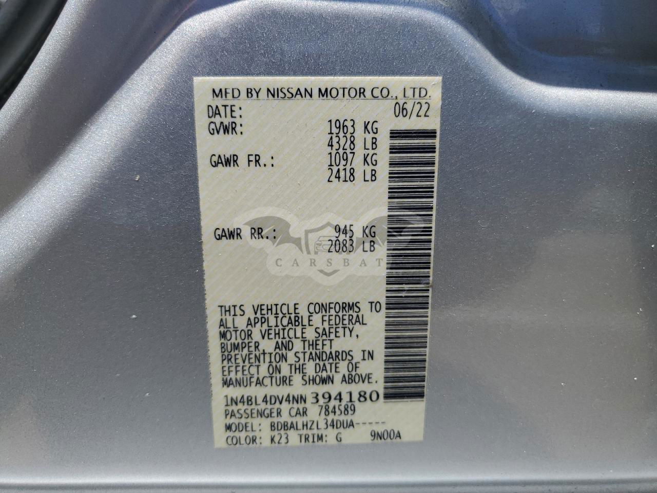 • VIN: 1N4BL4DV4NN394180