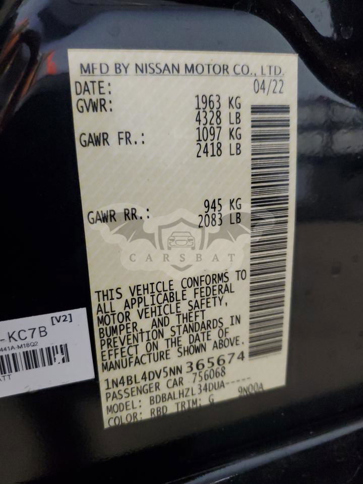 • VIN: 1N4BL4DV5NN365674