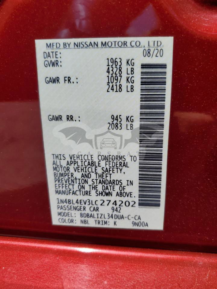 • VIN: 1N4BL4EV3LC274202
