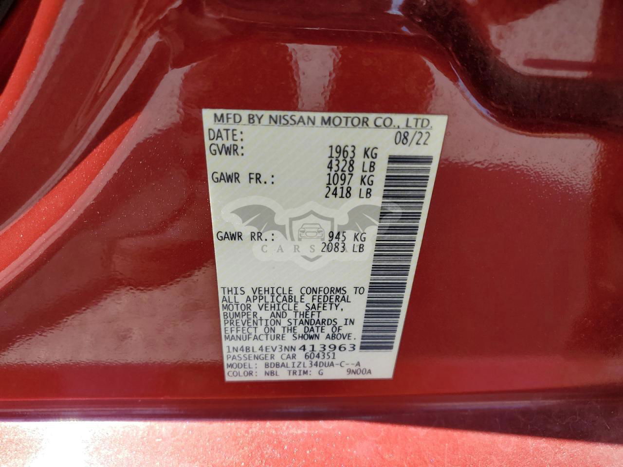 • VIN: 1N4BL4EV3NN413963