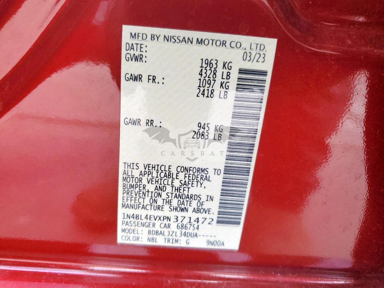 • VIN: 1N4BL4EVXPN371472