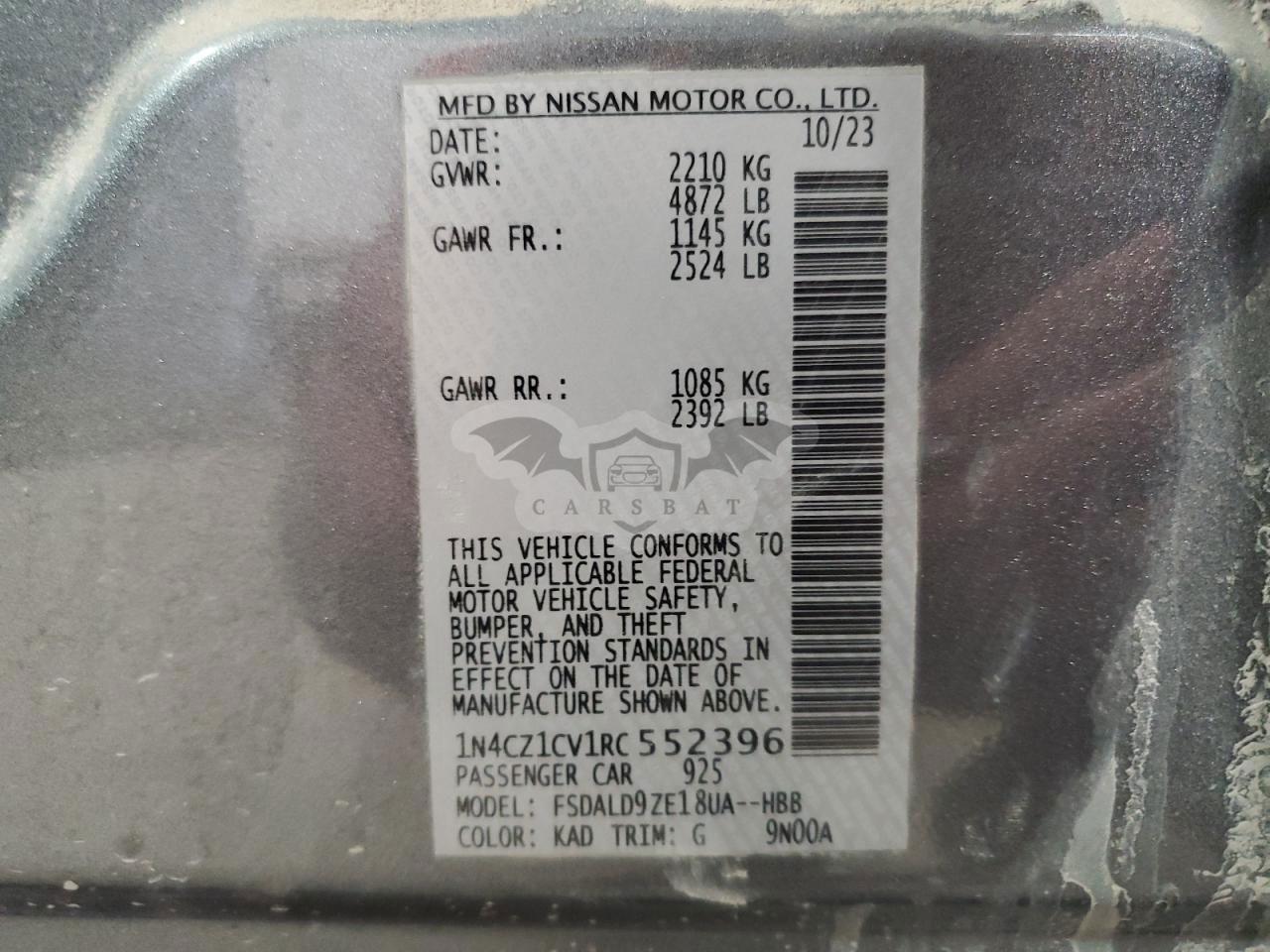• VIN: 1N4CZ1CV1RC552396