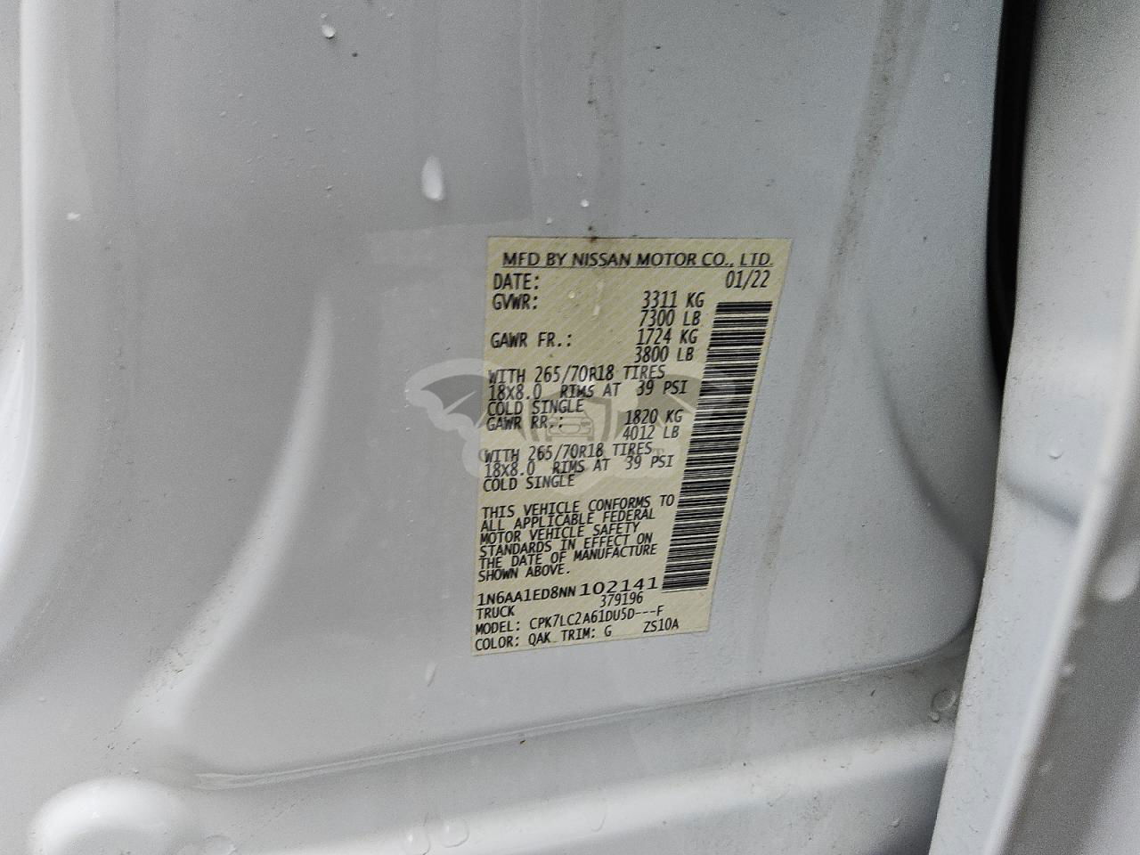 • VIN: 1N6AA1ED8NN102141