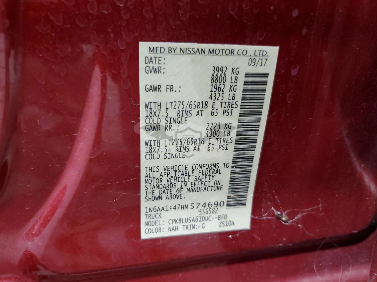 • VIN: 1N6AA1F47HN574690