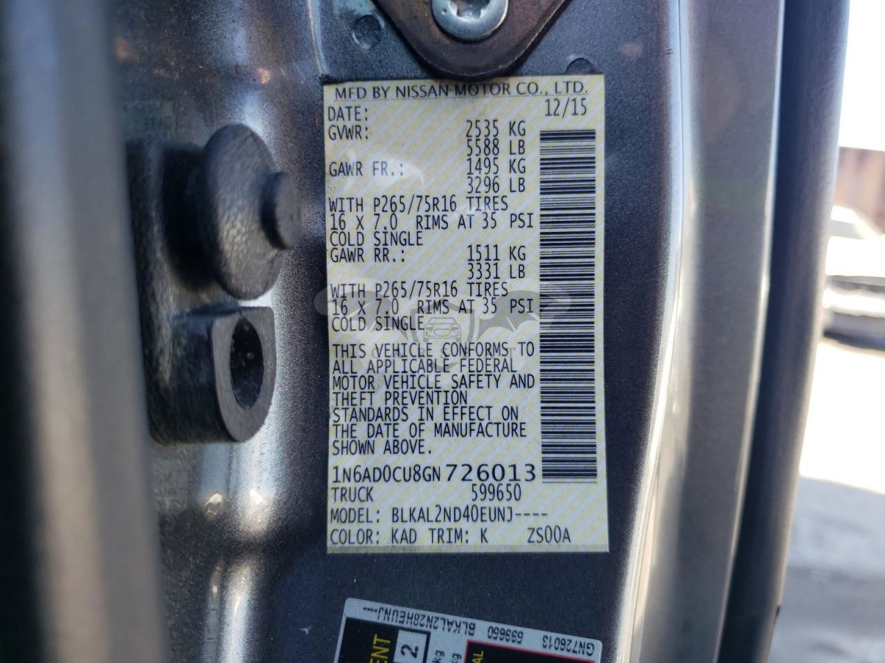 • VIN: 1N6AD0CU8GN726013