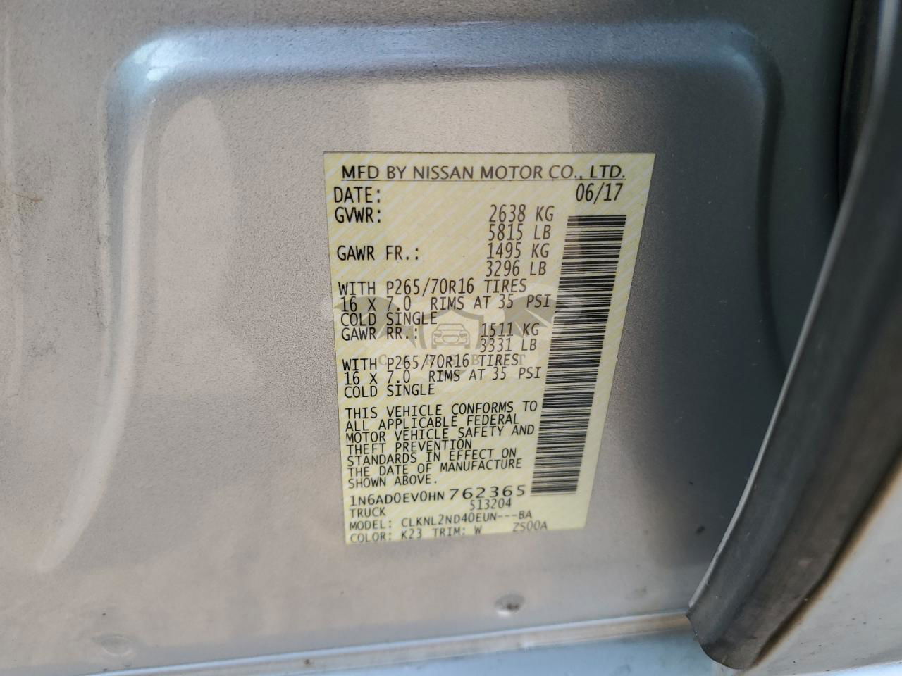 • VIN: 1N6AD0EV0HN762365