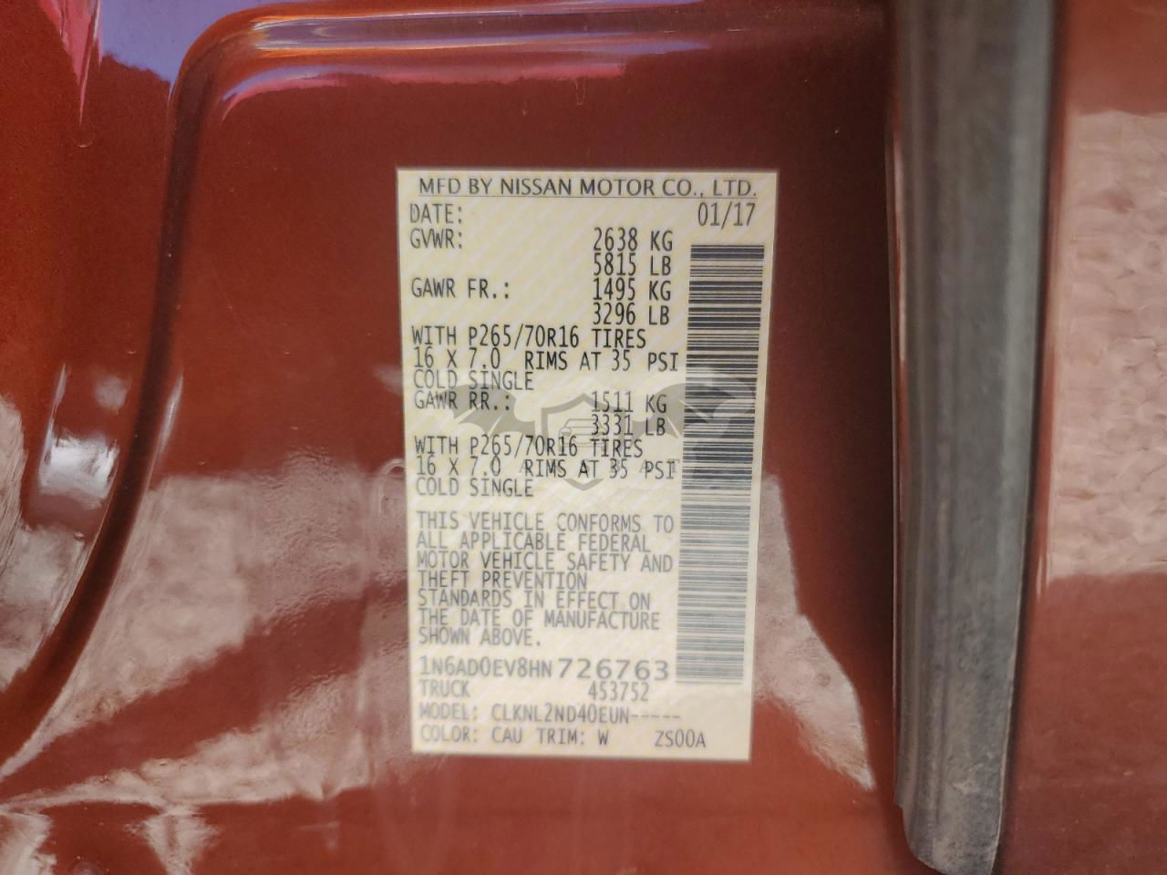 • VIN: 1N6AD0EV8HN726763