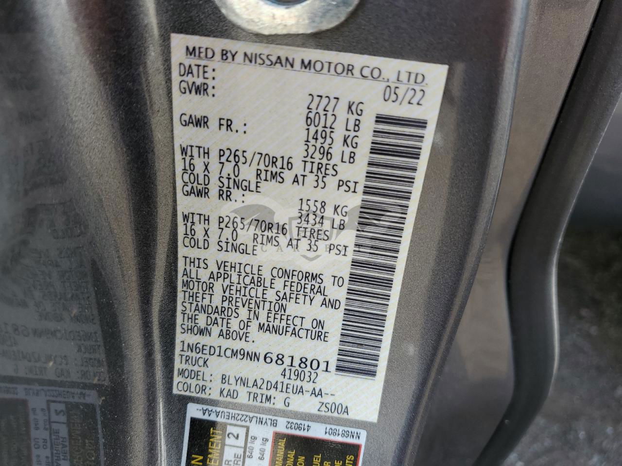 • VIN: 1N6ED1CM9NN681801