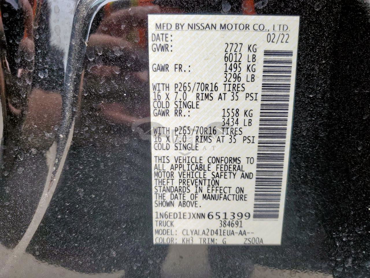 • VIN: 1N6ED1EJXNN651399
