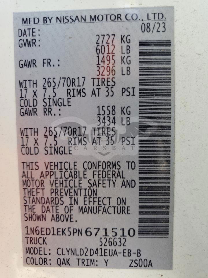 • VIN: 1N6ED1EK5PN671510