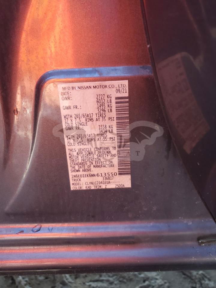 • VIN: 1N6ED1EK6NN613550