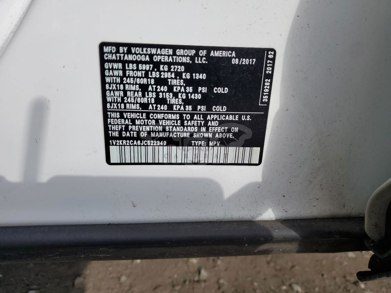 • VIN: 1V2KR2CA6JC522340
