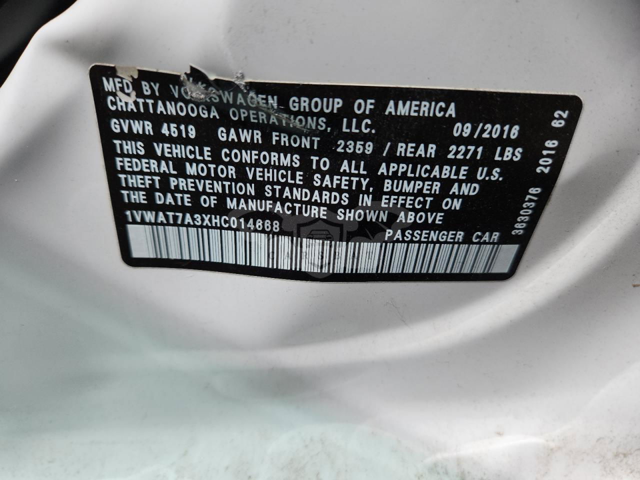 • VIN: 1VWAT7A3XHC014668