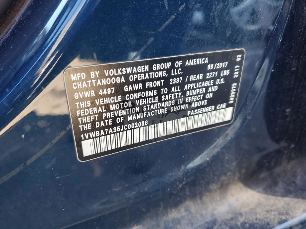 • VIN: 1VWBA7A35JC002038